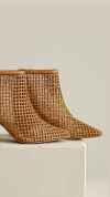 O salto de 4 cm em madeira castanheira reflorestada une beleza natural e sustentabilidade, garantindo estabilidade e um toque de elegância discreta ao seu visual.